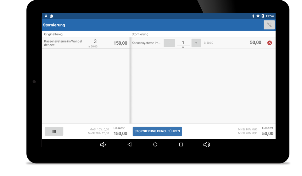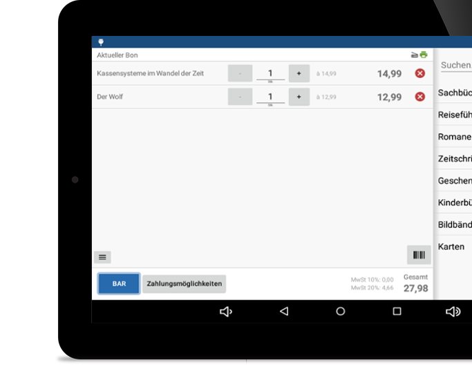 Nein. Sie können Produkte schnell und einfach aus Ihrem übersichtlich in Kategorien eingeteilten Produktkatalog auswählen, um Sie dem Beleg hinzuzufügen. Haben Sie viele Produkte, eine hohe Frequenz oder bevorzugen einfach das Scannen von Barcodes, können Sie aber auch einen Barcodescanner verwenden. Sie müssen sich nicht von Anfang an entscheiden – eine Nachrüstung ist jederzeit möglich.